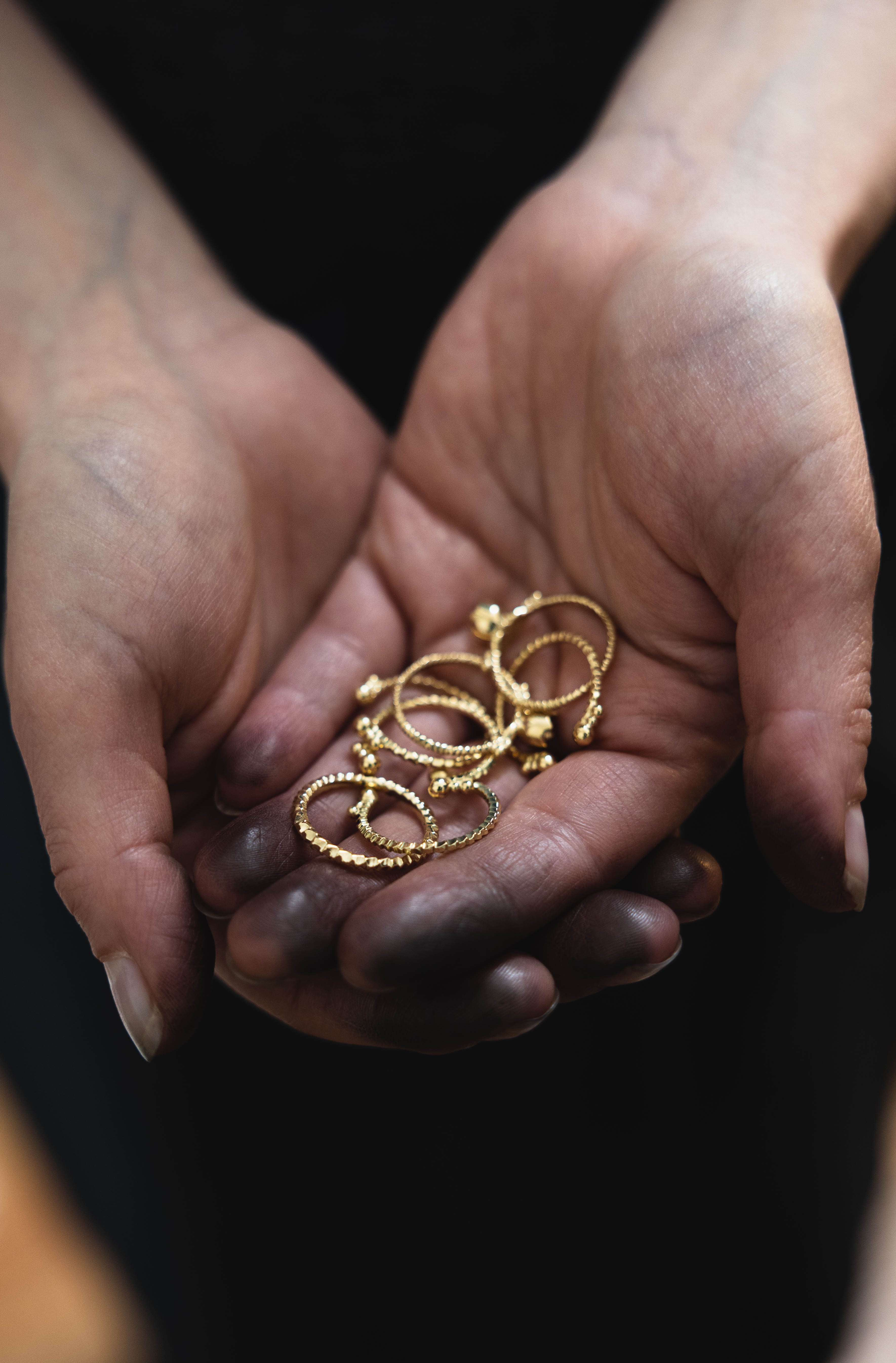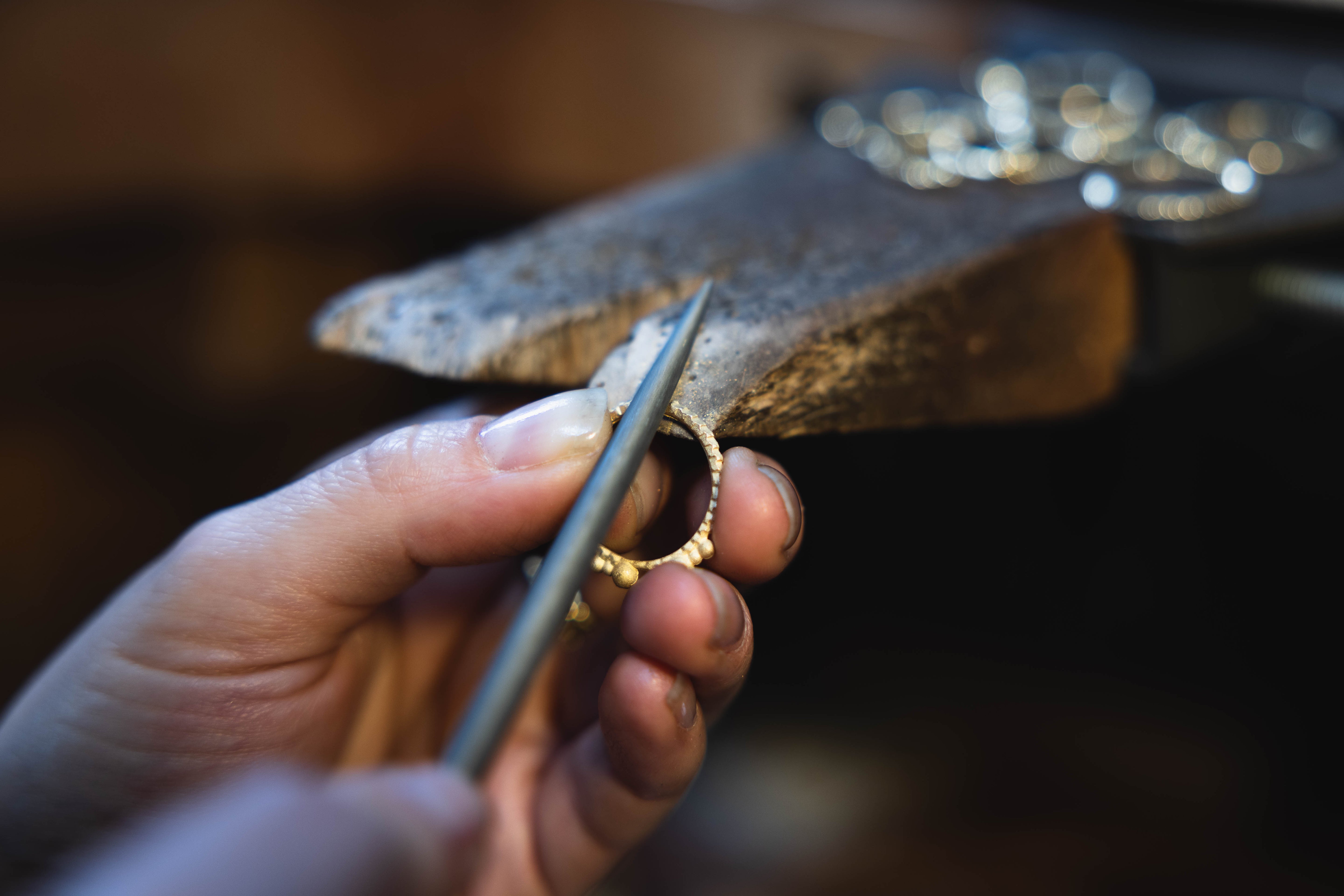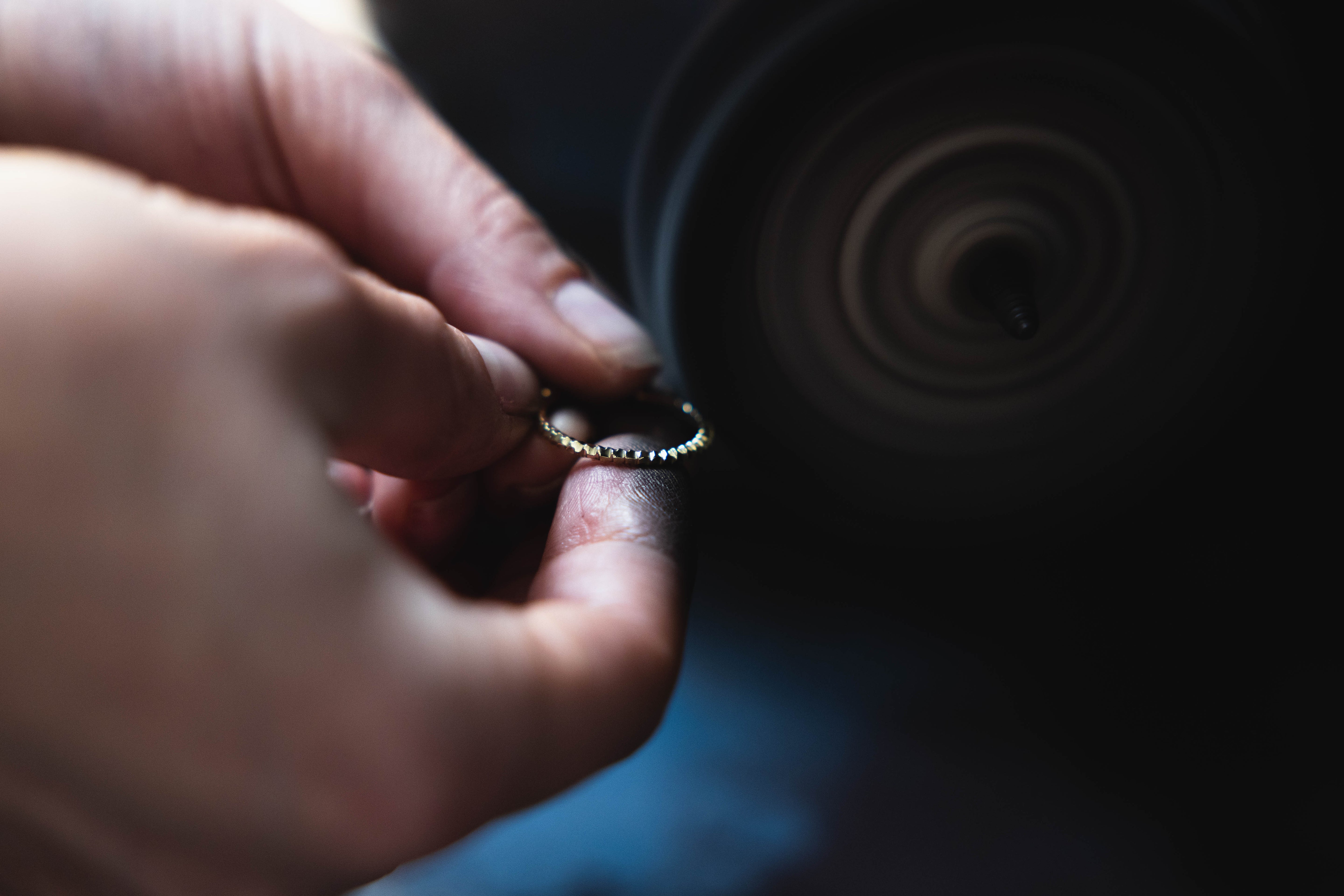 The illusion is achieved with a kinetic setting invented in our studio using just a bit of gold, gems, and imagination.