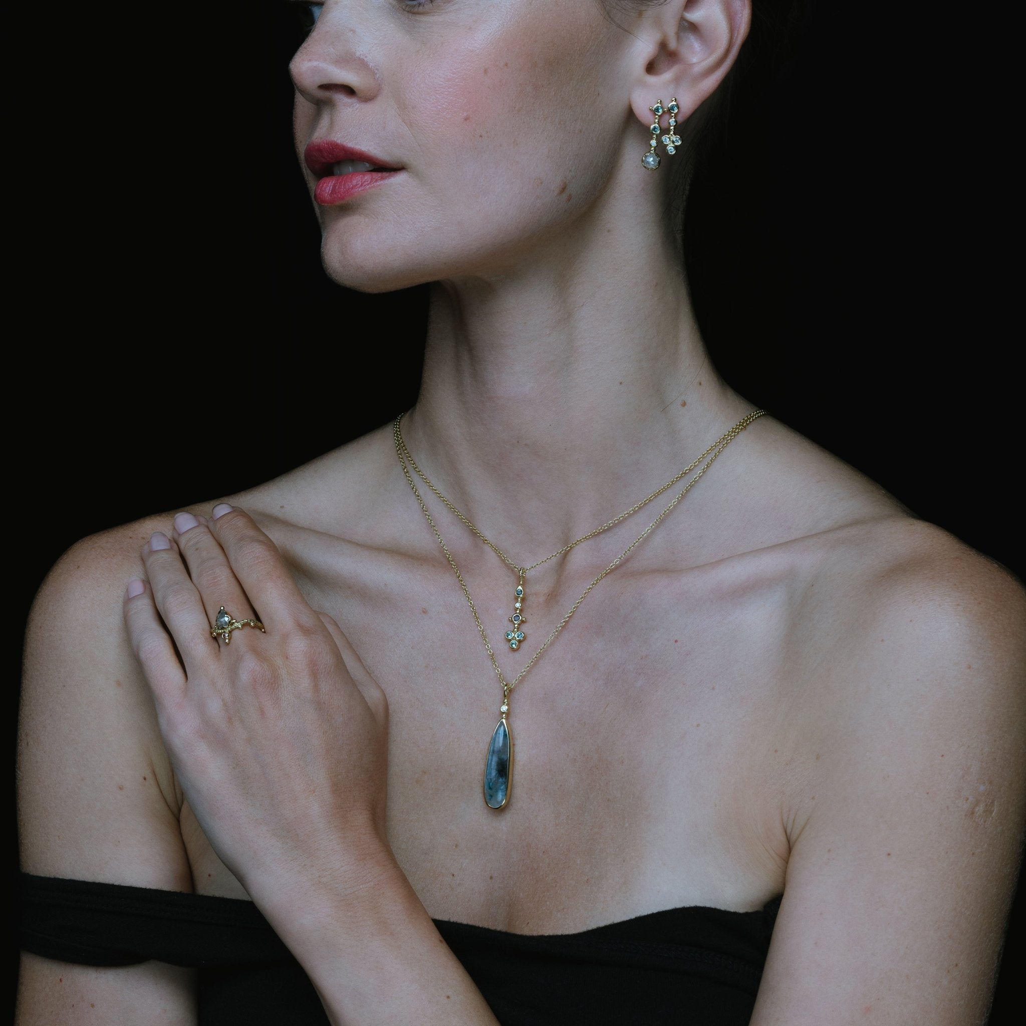 The illusion is achieved with a kinetic setting invented in our studio using just a bit of gold, gems, and imagination.